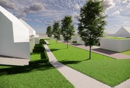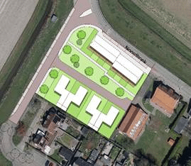 - Tussen de patio’s en de dijkwoningen komt een groene bufferzone. Hier is ruimte voor bomen, groen en waterberging, kortom een stukje groene kwaliteit toevoegen.