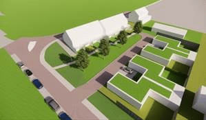 - Aan de achterzijde van de patio’s komt een groene haag.