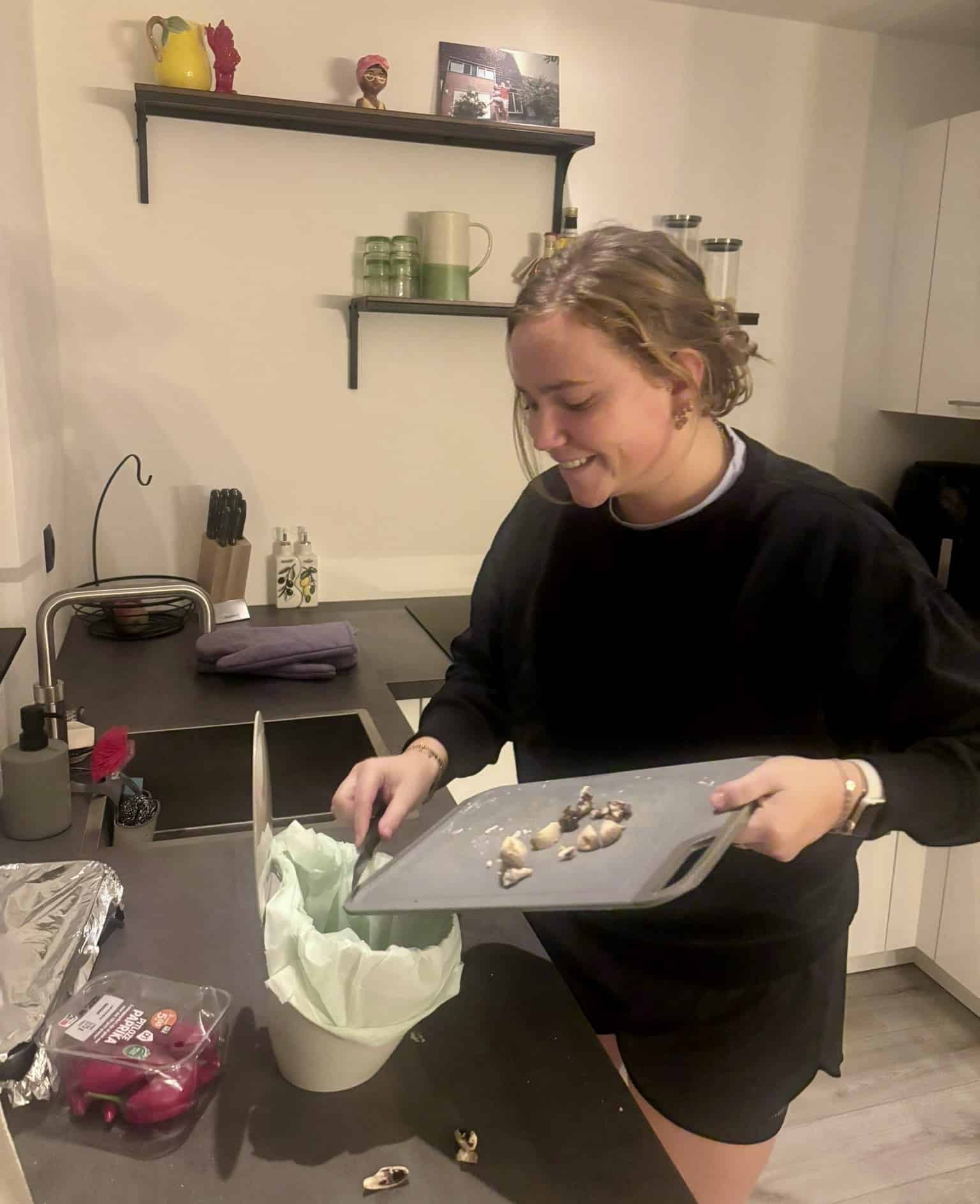“Sinds 1,5 jaar woon ik op mezelf, samen met m’n vriend Nick. We scheiden ons afval ook zo goed mogelijk: plastic, papier en gft apart in de daarvoor bestemde kliko. Het gft-bakje op het aanrecht maakt het makkelijk om meteen de etensrestjes daarin te doen. Ik hang er een speciaal compostzakje in, dan wordt het bakje niet vies. Eens in de twee weken reinig ik het bakje in de vaatwasser. Hartstikke makkelijk. Als je op zo’n eenvoudige manier een bijdrage kunt leveren aan een beter milieu, waarom zou je dat dan niet doen?”