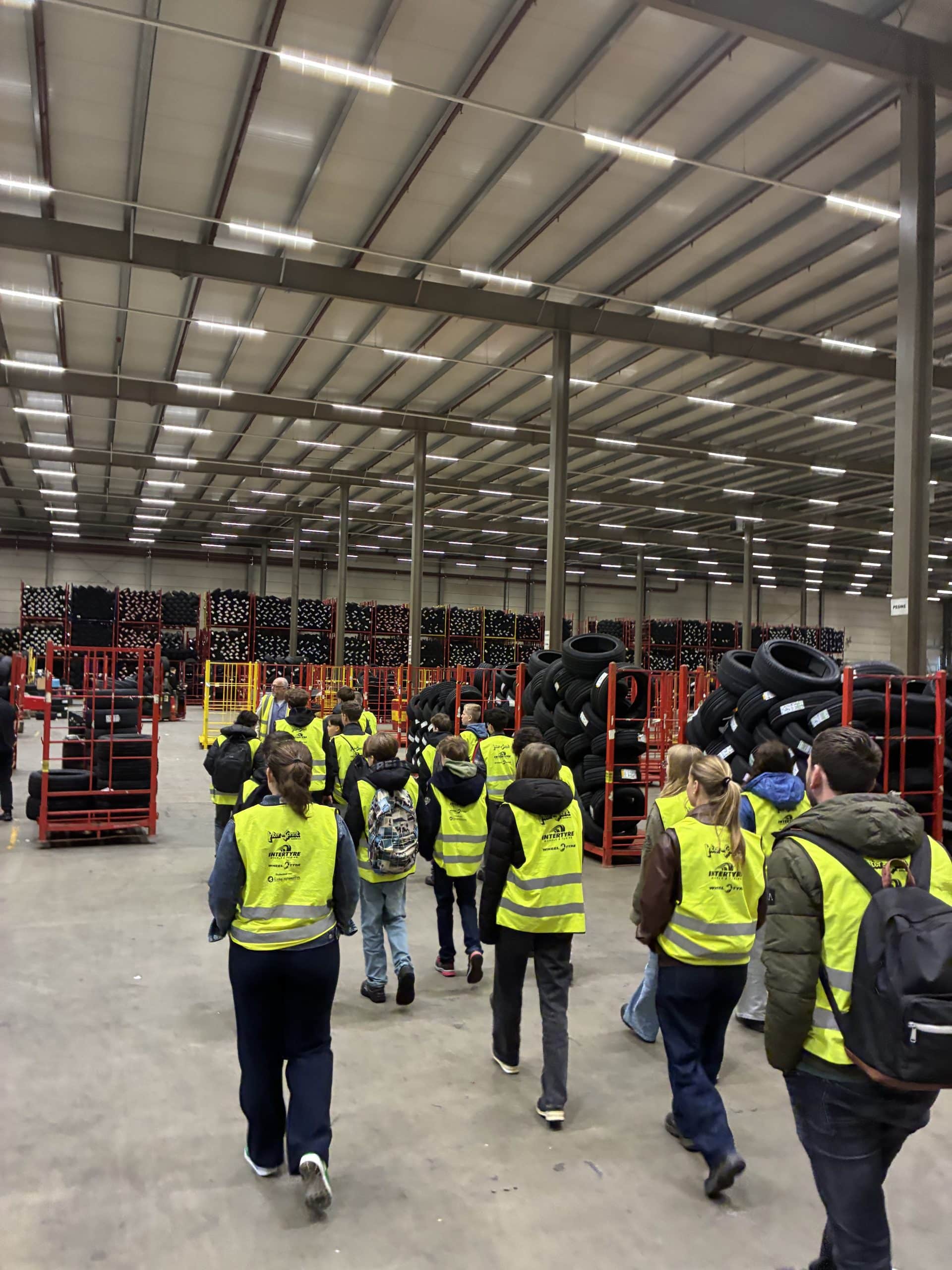 Daarna door naar InterSprint, waar zo’n beetje alle soorten en maten autobanden opgeslagen worden (wel 3 miljoen!). We leerden dat garages dagelijks hun autobanden kunnen bestellen en die 3x per dag uitgeleverd worden. We werden bij InterSprint vervolgens getrakteerd op een drankje en wat fruit en een mooie dopper voor iedereen.